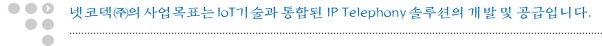 * ³ÝÄÚµ¦¢ßÀÇ »ç¾÷¸ñÇ¥´Â IoT±â¼ú°ú ÅëÇÕµÈ IP Telephony ¼Ö·ç¼ÇÀÇ °³¹ß ¹× °ø±ÞÀÔ´Ï´Ù.